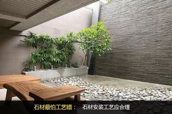 让普通业主望尘怯步的不仅是昂贵的石材价格,还高复杂的工艺,高嚣的人工费。由于石材都是通过毛料切割加工成成昂,加之石材的厚度与自重超过了普通的地砖,采用直接铺贴是无法将石材固定在墙上。真施工工艺较为繁琐,地面只能选用干铺;外立面和室内的墙面都必须采用干;圭和灌浆两种工艺。所以,石材铺贴的重点在于采用合理的施工工艺。