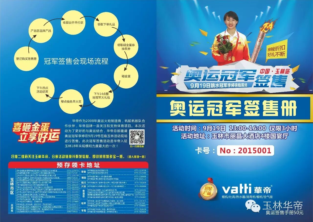 各玉林华帝专卖店倾情打造!领取冠军签售册咨询当地销售网点