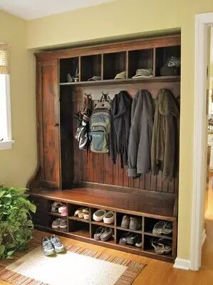 一般鞋柜都有门,如此,即使鞋子摆放的杂乱无章也不会被看到.有的家庭将玄关布置得很巧妙,与周围布局融为一体,所以从外边看,一点也看不出鞋柜的痕迹。