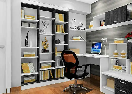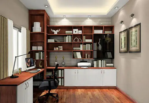解决方法:在横梁下设计一系列的展示式书柜,既美观也不影响整体的实用性,而且色调上让人完全感觉不到横梁的存在。