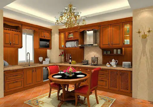解决方法:此厨房空间较大,且角落有柱子,利用L型的橱柜能完美解决柱子问题,同时两边吊柜的设计修饰了柱子的裸露部分,把柱子完美地处理,使得整个空间更加整体和美观。
