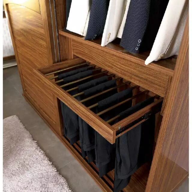 根据我国国家标准GB3327-82规定,标准的衣柜尺寸包括一下几点:平开门衣柜深度为550~600MM;推拉门衣柜深度≥626MM;挂衣杆下沿至底板距离长衣>1350MM、短衣>900MM;叠放区的深度>450MM;顶层抽屉上沿离地面<1250mm、底层抽屉下沿离地面>60MM;抽屉深400~500MM。