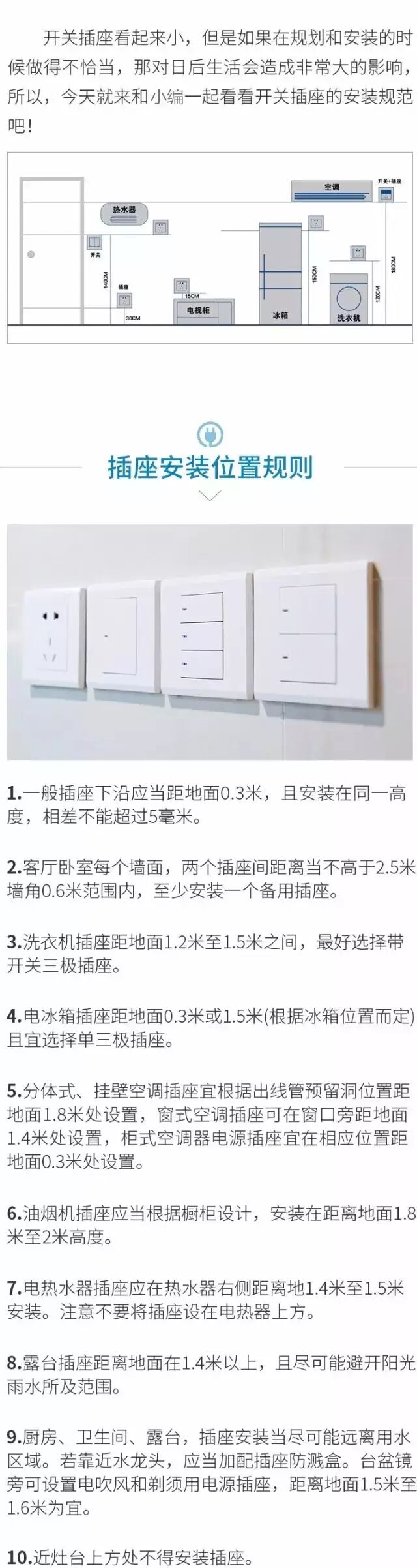 开关插座看起来小,但是如果在规划和安装的时候做得不恰当,那对日后生活会造成非常大的影响,所以,今天就来和小编看看开关插座的安装规范吧!