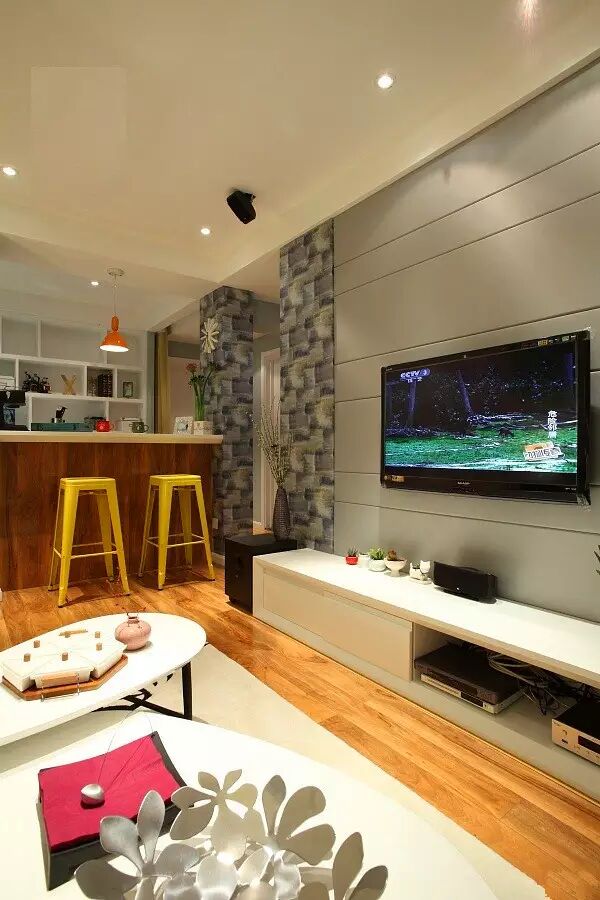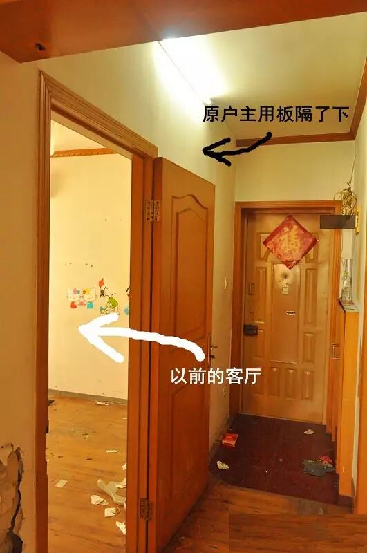 原本改造前的客厅是被原房主木板隔间出一个走廊,对于空间规划来说显然是不够合理的。