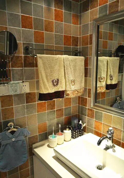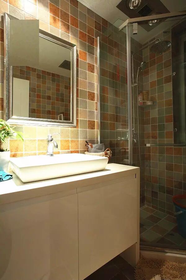 墙面上的彩色方砖,提亮了整个卫浴间的质感。翻新后还特别隔出了干湿分离的淋浴空间,十分实用。