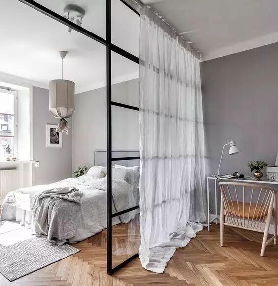 巧用隔断作功能区分,隔断材质的选择上可以用玻璃或厚些的装饰帘。