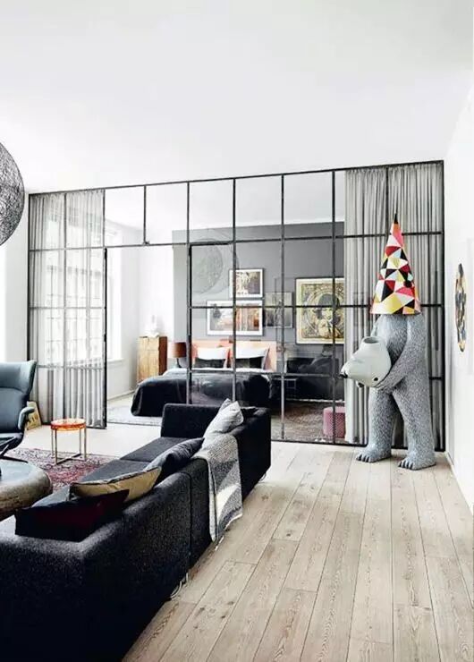 2、用玻璃 中间做简易艺术隔断;